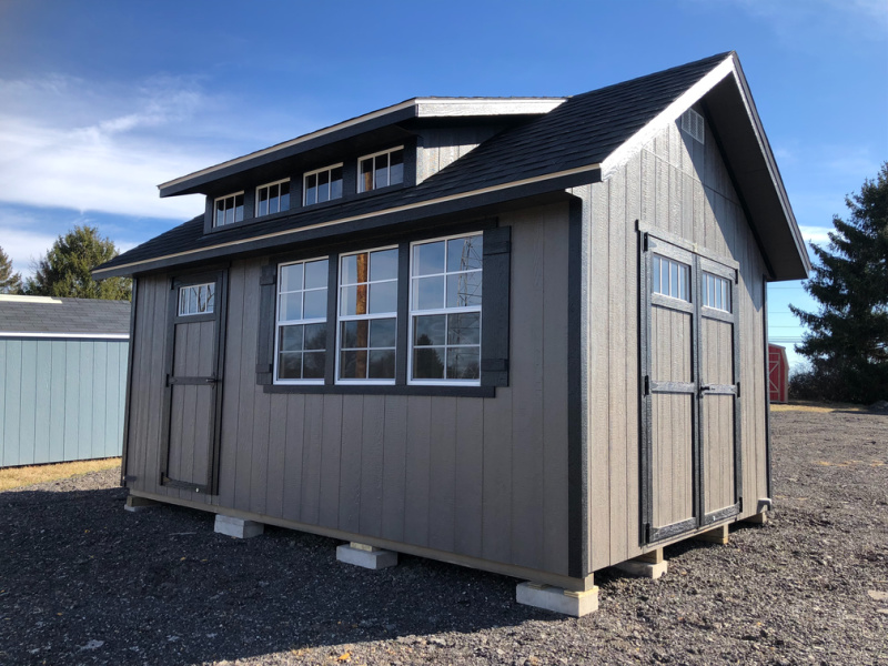 All products are built by Amish craftsmen in Ohio. Our Amish products are built with top-quality materials only, no shortcuts! We offer styles and sizes available that can fit any storage and lifestyle needs and budget! Our buildings are available with 29 gauge steel roofing (factory triple-coated and baked in your choice of many color combinations), or 25- year standard shingle (35- year dimensional available). Our buildings all come with 2×4’s, 16″ on center wall joists for maximum strength with 50- year wood siding, or your choice of 29 gauge steel, all metal buildings 24 on center.