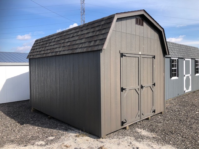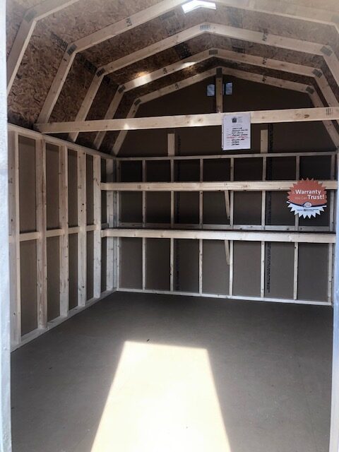 10×14 barnstyle 2000 series deluxe. This barn includes diamond threshold, ridge light & (2) shelves.