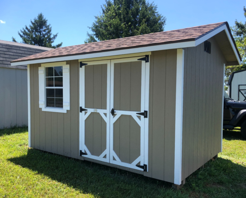 All products are built by Amish craftsmen in Ohio. Our Amish products are built with top-quality materials only, no shortcuts! We offer styles and sizes available that can fit any storage and lifestyle needs and budget! Our buildings are available with 29 gauge steel roofing (factory triple-coated and baked in your choice of many color combinations), or 25- year standard shingle (35- year dimensional available). Our buildings all come with 2×4’s, 16″ on center wall joists for maximum strength with 50- year wood siding, or your choice of 29 gauge steel, all metal buildings 24 on center.