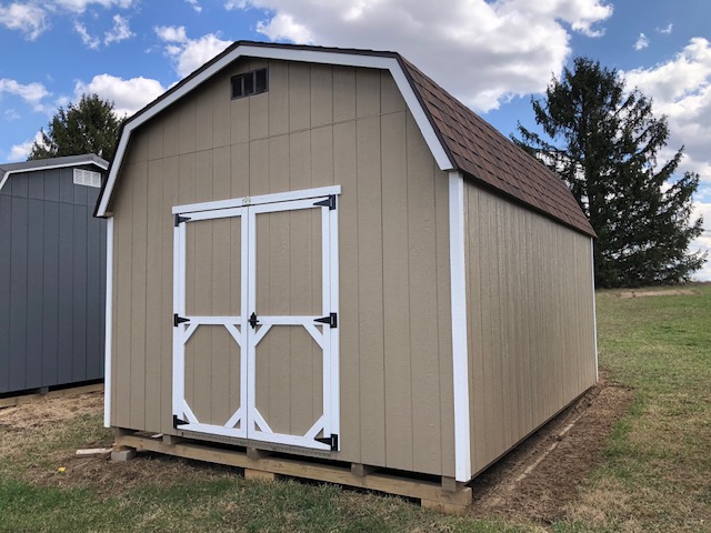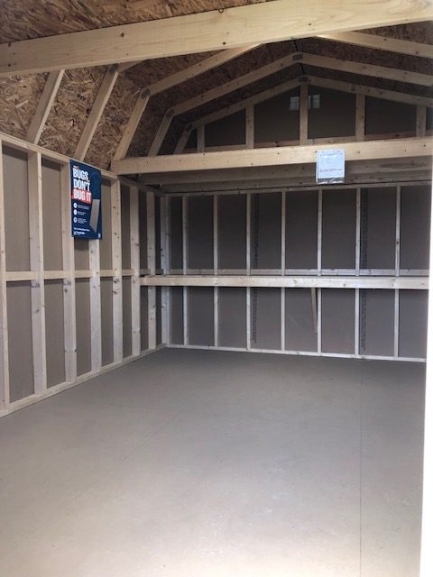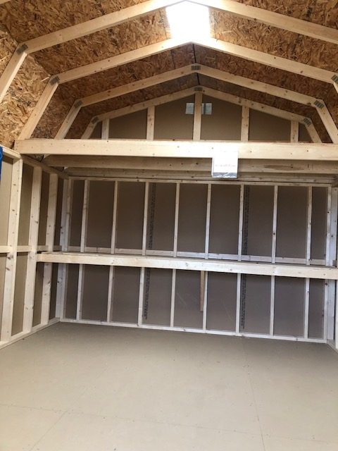 12x16 barnstyle 2000 series deluxe. This barn includes diamond threshold at entry, 60 " doors, 24" x 12' shelf, 10' ridge light, 4' loft & air vents.