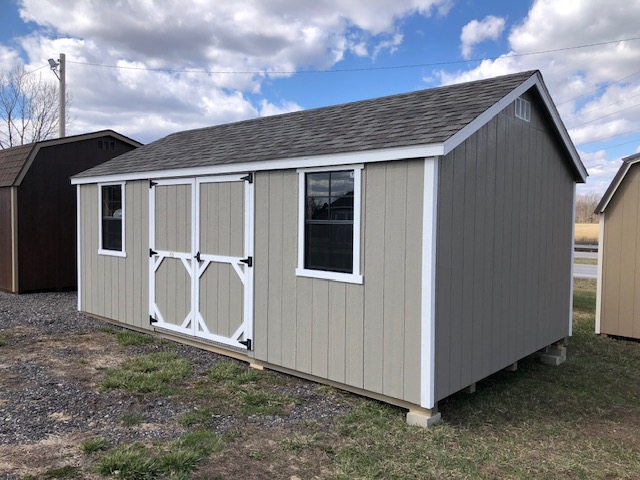 12x20 Gable 2000 series deluxe. This barn includes diamond threshold at entry, 72" double door, (2) 24" x 36" windows, shelving & air vents.