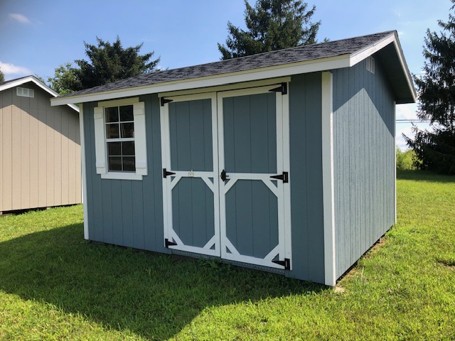All products are built by Amish craftsmen in Ohio. Our Amish products are built with top-quality materials only, no shortcuts! We offer styles and sizes available that can fit any storage and lifestyle needs and budget! Our buildings are available with 29 gauge steel roofing (factory triple-coated and baked in your choice of many color combinations), or 25- year standard shingle (35- year dimensional available). Our buildings all come with 2×4’s, 16″ on center wall joists for maximum strength with 50- year wood siding, or your choice of 29 gauge steel, all metal buildings 24 on center.